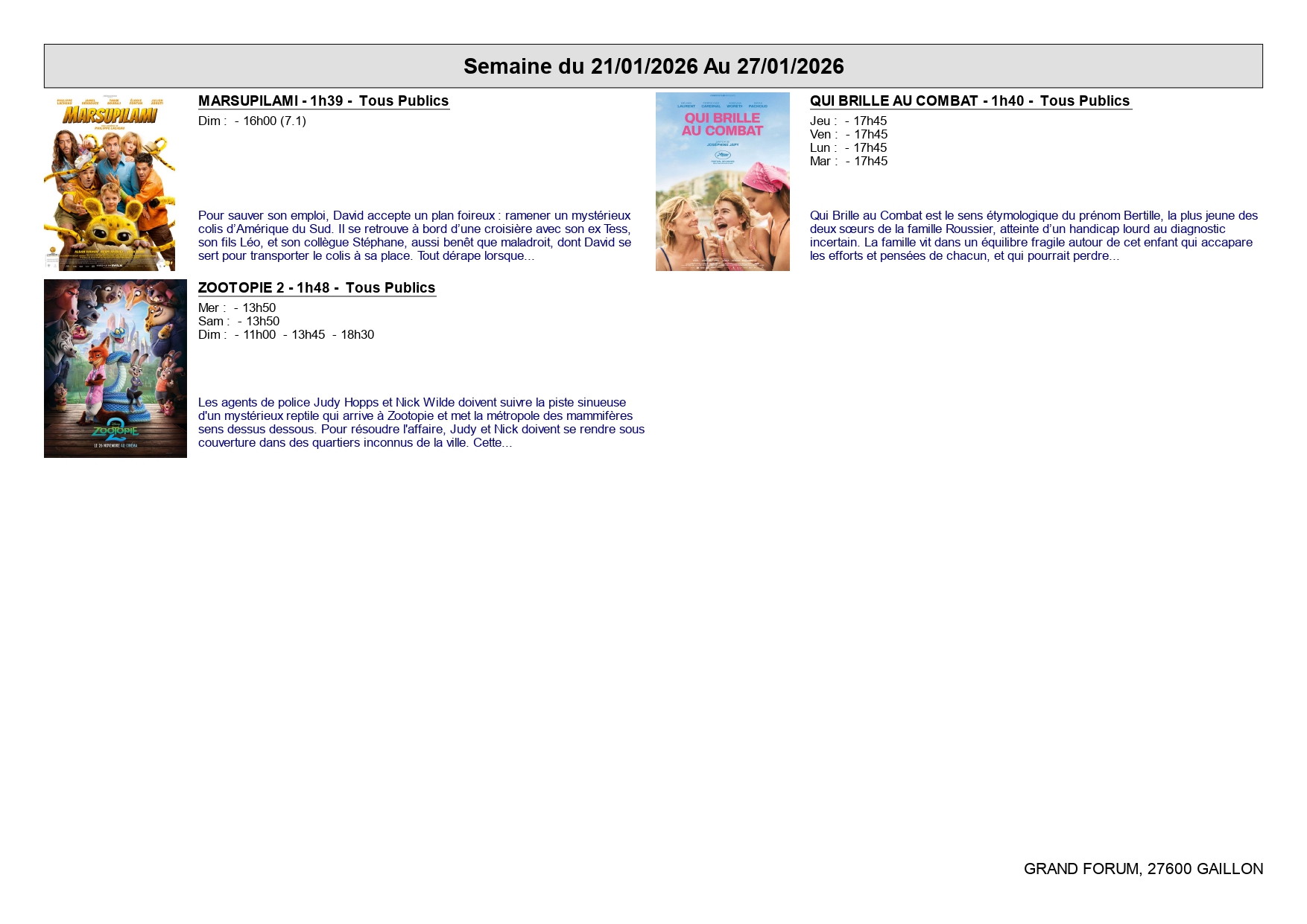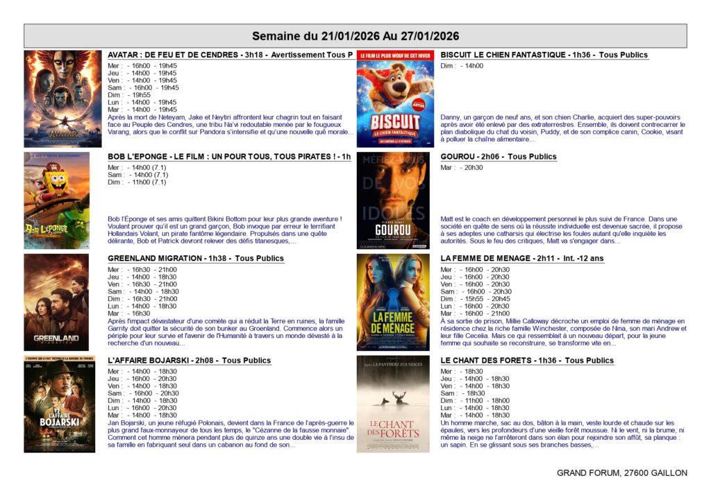 CINÉMA : Programmation de la semaine du 21 au 27 janvier 20 Jan 2026 | Actualités GRAND FORUM DE GAILLON