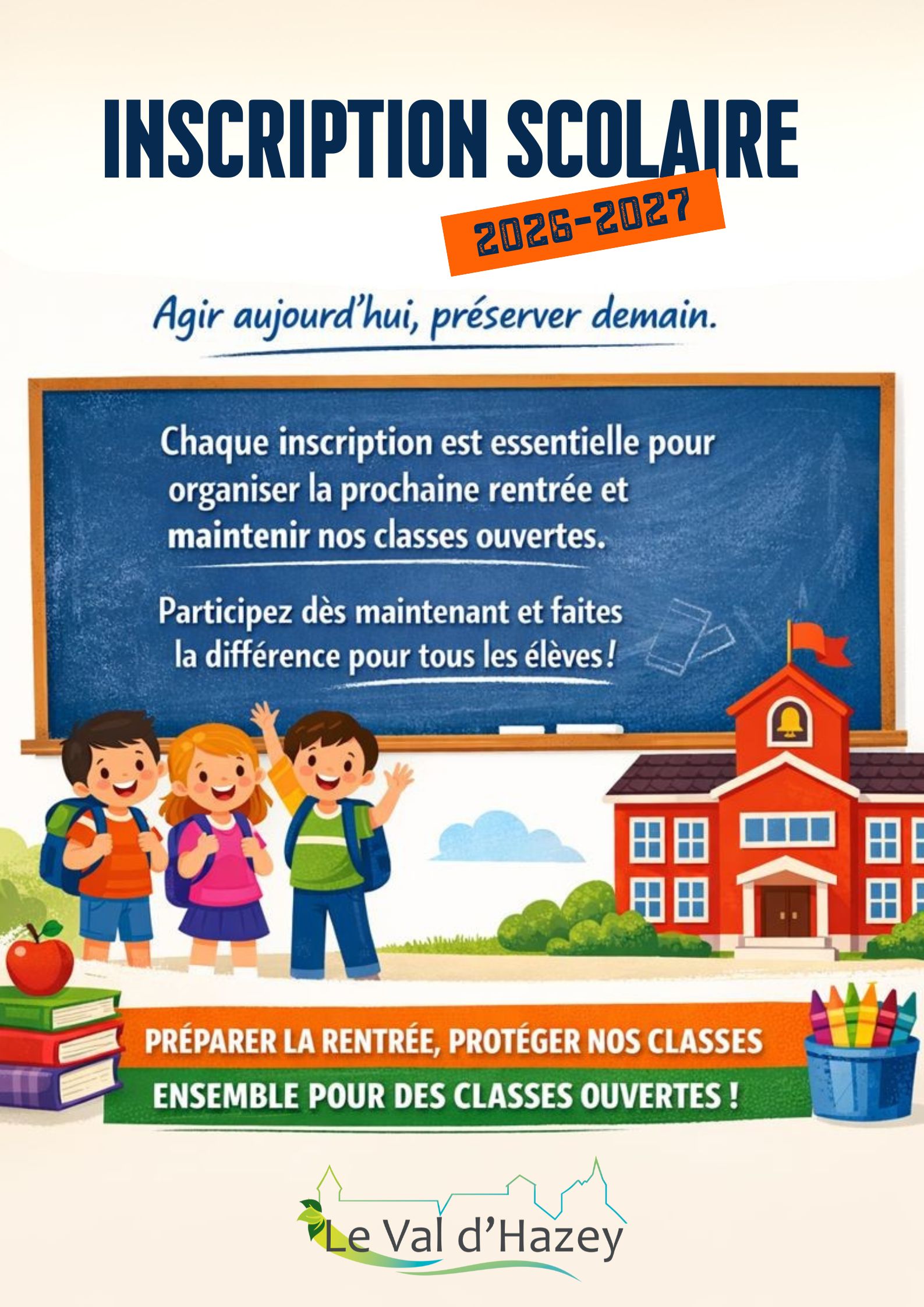 Pour les enfants entrant en CP, la date butoir pour les inscriptions est fixée au 31 mars 2026