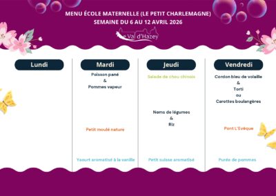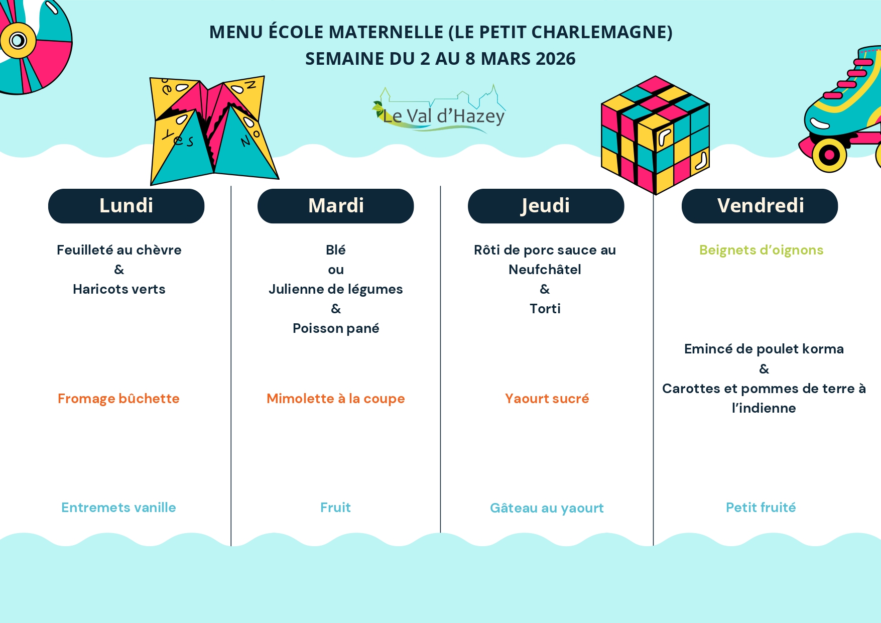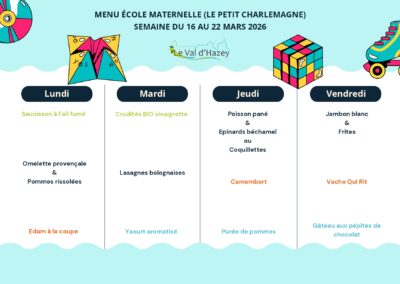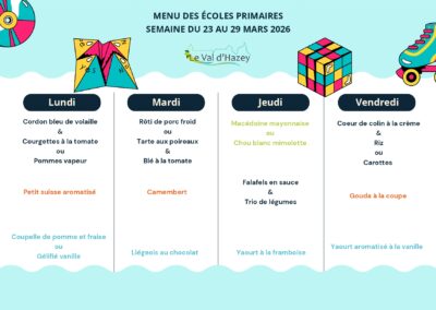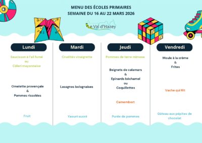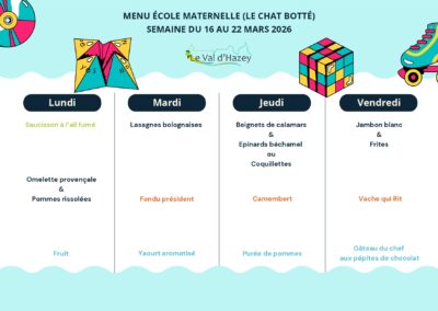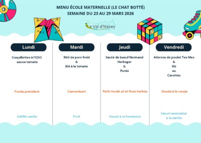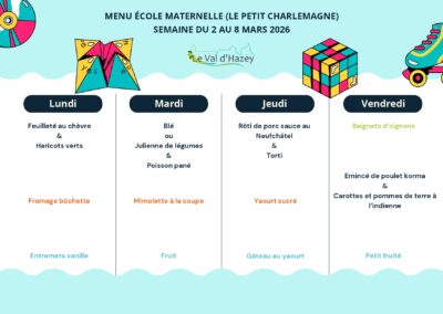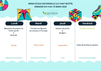 Menus des restaurants scolaires Accueil >Ma ville>Enfance et Jeunesse>Menus des restaurants scolaires Mis à jour : 13 février 2026 École Le Chat Botté École Le Chat Botté École Le Chat Botté École Le Chat Botté École Le Chat Botté École Le Chat Botté École Le Petit Charlemagne École Le Petit Charlemagne École Le Petit Charlemagne École Le Petit Charlemagne École Le Petit Charlemagne École Le Petit Charlemagne Écoles Primaires Écoles Primaires Écoles Primaires Écoles Primaires Écoles Primaires Écoles Primaires